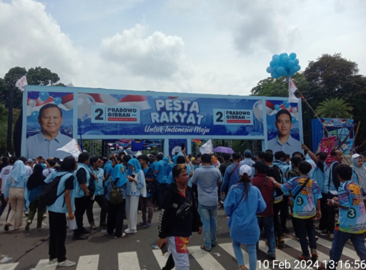 Benar saja, apa yang terjadi, Gedung Bung Karno (GBK) dipadati para pendukung Paslon 02, didalam dan luar gedung semua terisi, yang akhirnya lautan manusia pun terlihat di wilayah GBK.